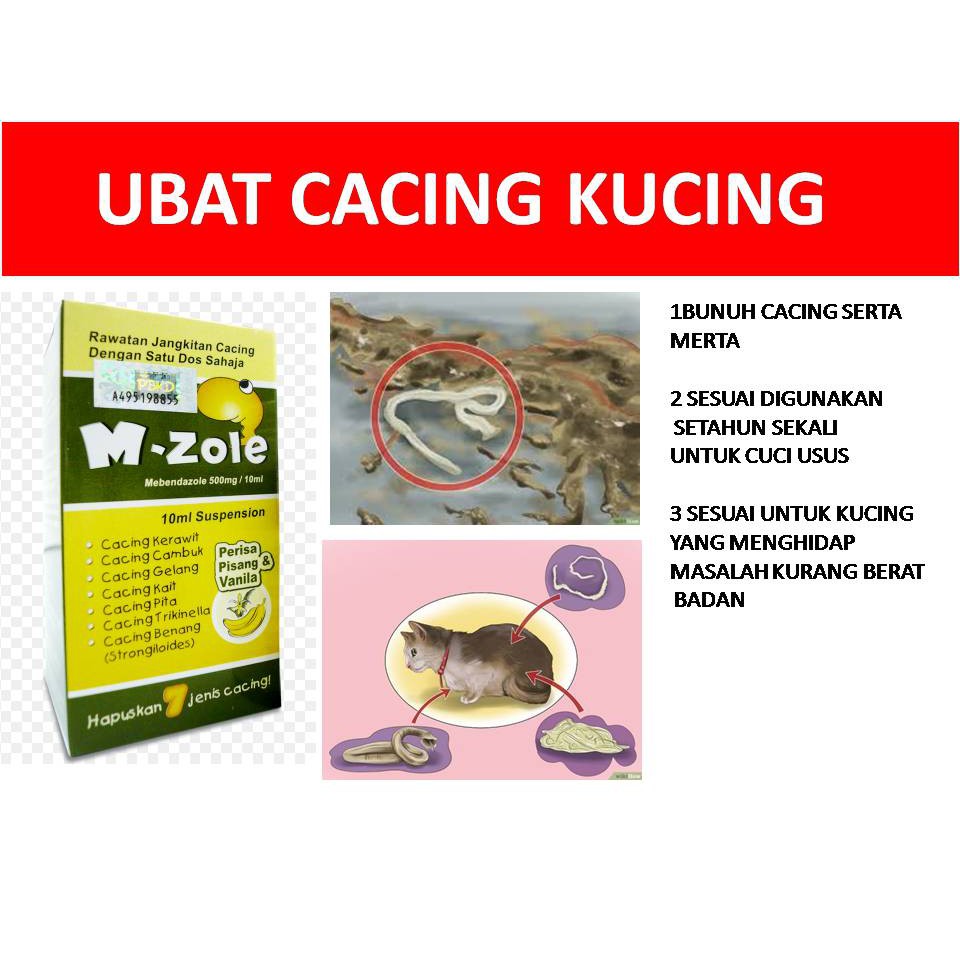 WORMECTIN 2ml5ml obat jamur parasit cacing kucing anjing domba sapi. Ubat ini akan membantu menghapuskan cacing di dalam usus kucing. 1- TIDAK semua ubat cacing boleh membunuh semua cacing.